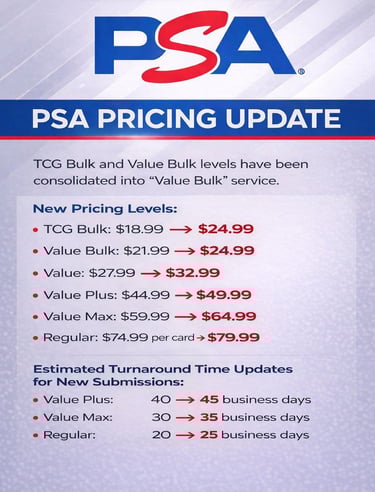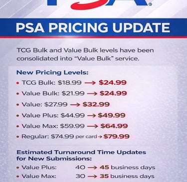 PSA has once again adjusted its pricing and turnaround times as of February 10, 2026, marking the second such increase in six months. This latest "update" is a double-edged sword for collectors: higher costs across nearly all entry-level and mid-tier services, paired with a formal admission that those cards will take even longer to return home.